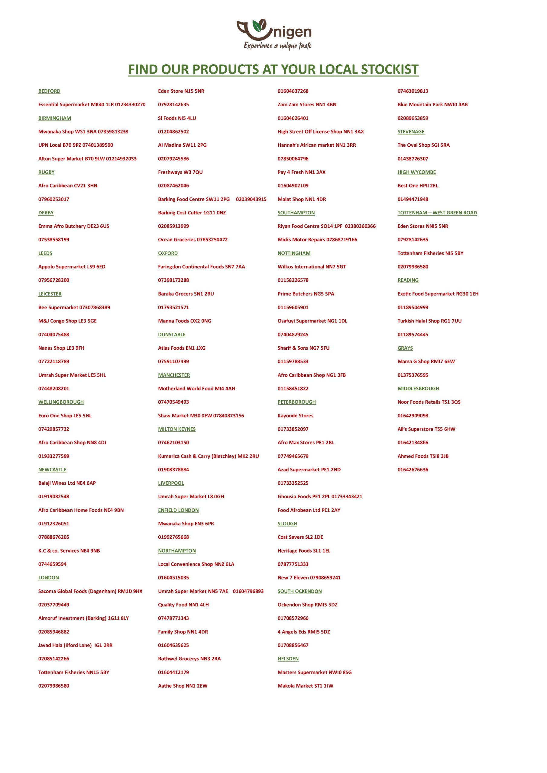 List of Stockist